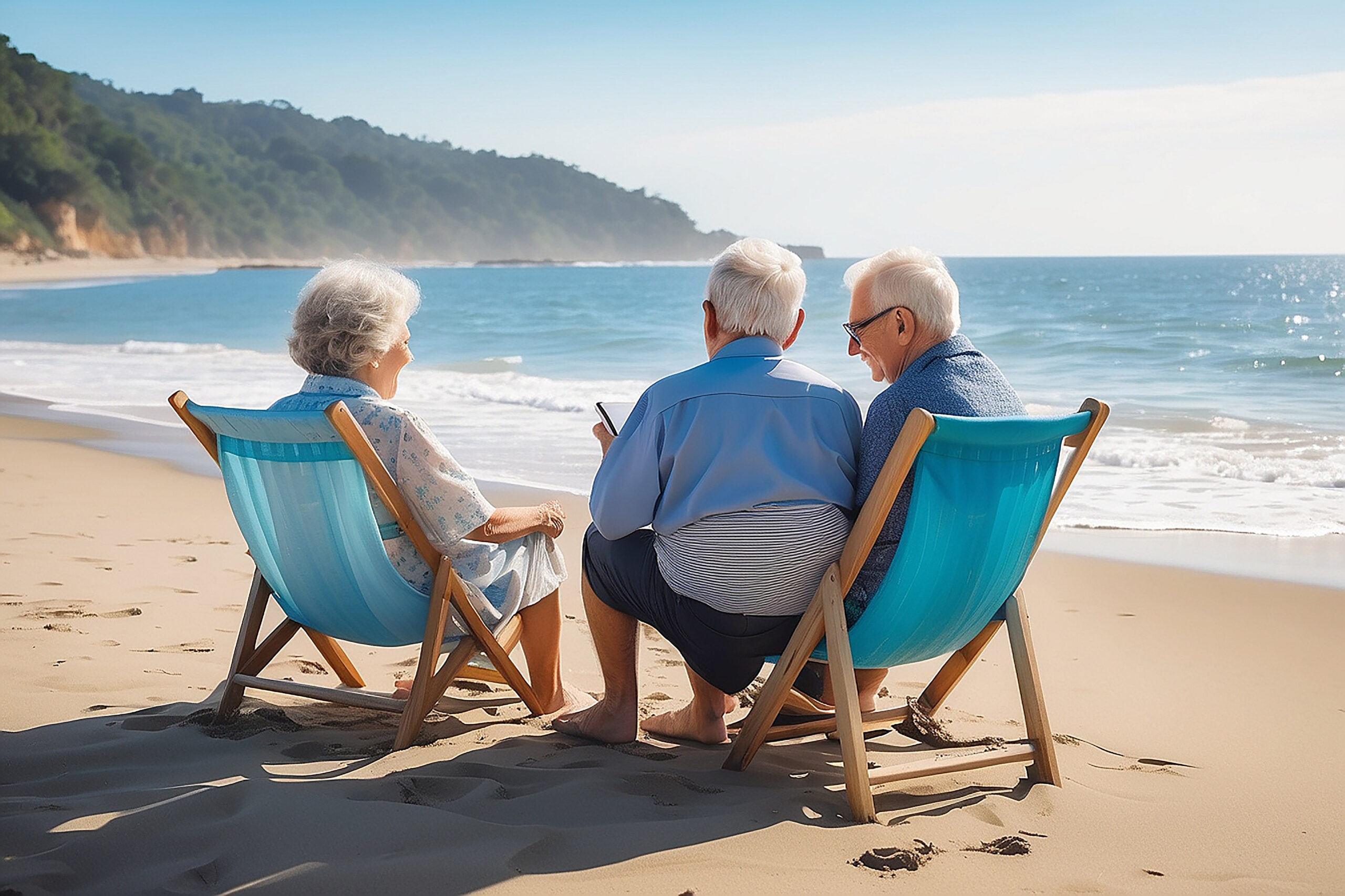 Seniors who are enjoying retirement on th beach in the morning Generative Ai